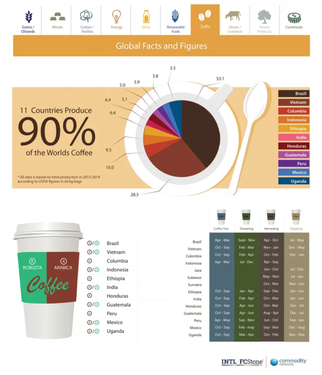 Info-graphics and Stats for worldwide coffee usage and consumption. Enlisting types and countries in a breakdown manner of detail.